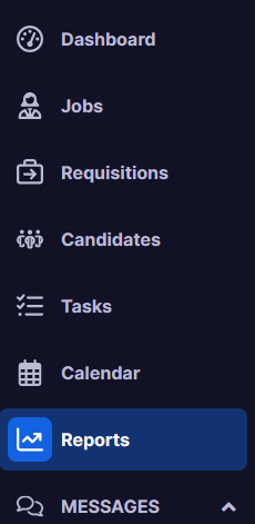 There are a variety of reports that can be retrieved from the system. These are divided into four categories: Applicant, Job, Requisition, and Compliance reports.