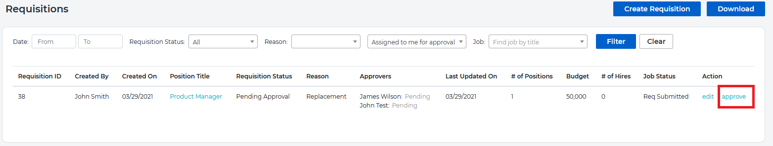 If a requisition is assigned to you, you will also see an extra link to “approve.”