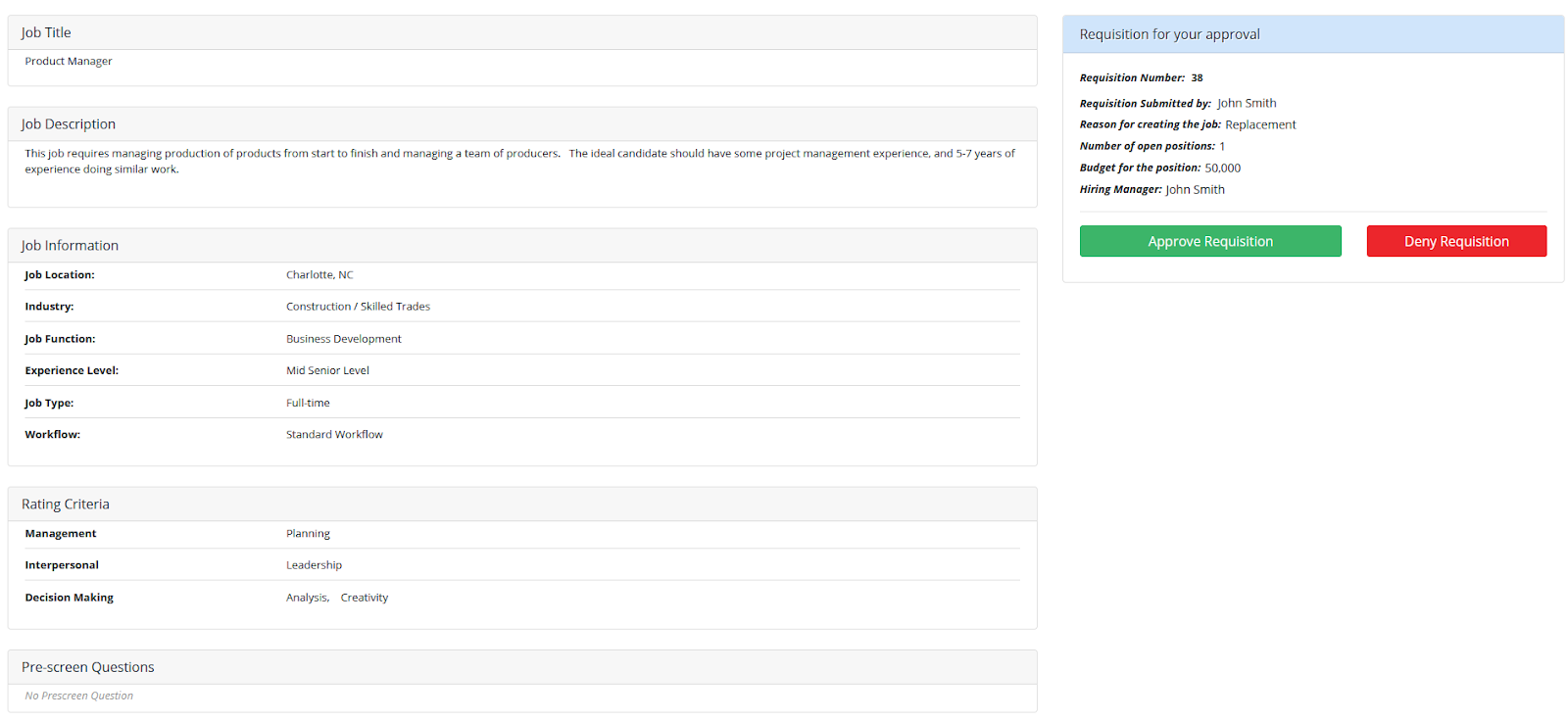 Selecting this link will bring you to a page like this, where you may review the request, and select Approve Requisition or Deny Requisition.