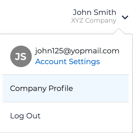- Enter the Company Profile and by selecting your user name from the upper right corner, then selecting Company Profile.