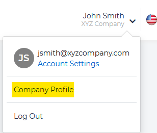 To do so, select your name on the upper right-hand corner of the site, and choose Company Profile.