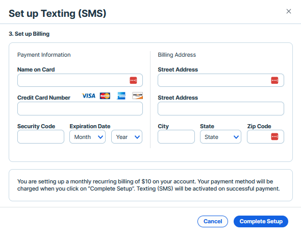 - Select Set up Texting (SMS).