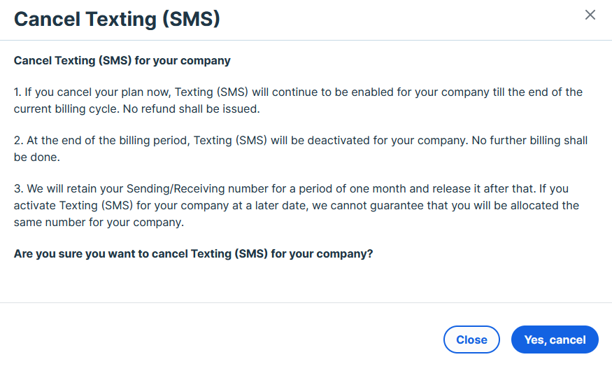 To cancel your Texting (SMS) subscription: