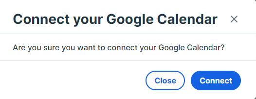 You will be prompted with a message asking you to confirm that you would like to connect to your Google Calendar.