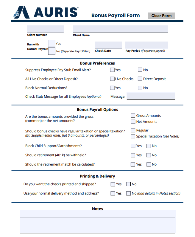 Bonus Payroll Form Select the link for the Bonus Payroll Form. Bonus Payroll Form.pdf 200 KB Download