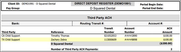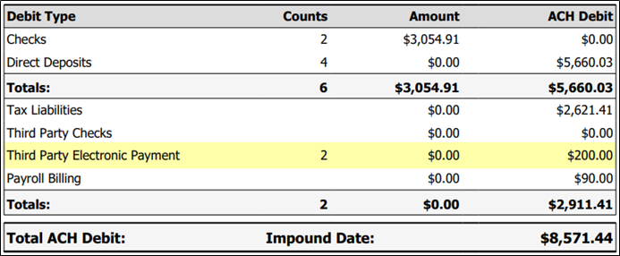 In this example, the account has two employees with child support orders, making the count of third-party electronic payments two.