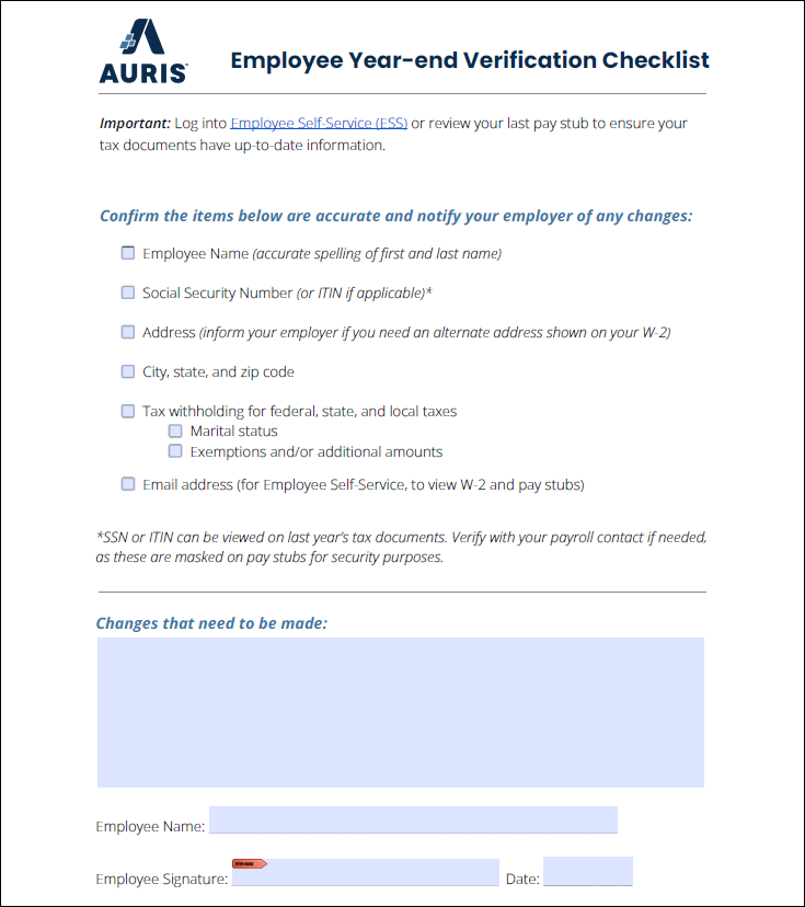 The image below is an example. Select this link for the Employee Year-end Verification Checklist.