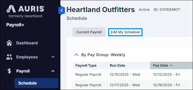 Payroll → Schedule → Edit My Schedule tab