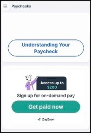 Employee Self-Service: Paychecks → ZayZoon Widget → Click Get paid now